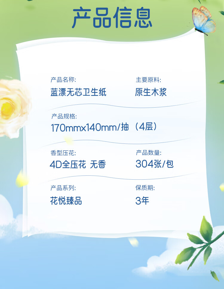 商品名称:蓝漂 白色气垫挂式抽纸 140*170*4层*1000张*15提*1箱 LP-50323