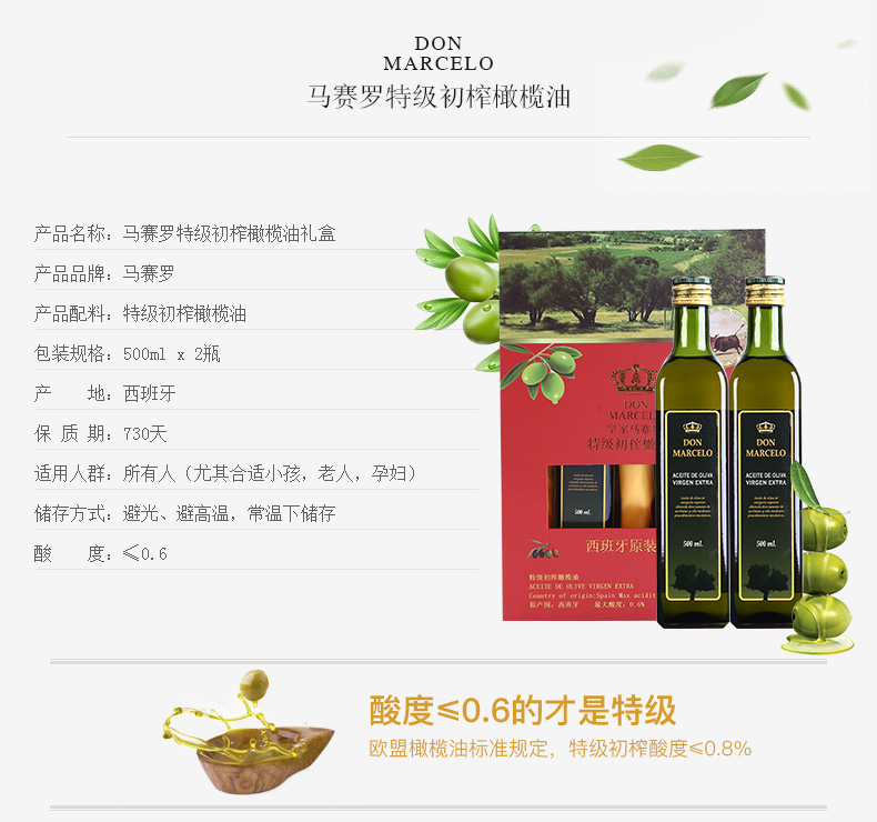 商品名称:马赛罗橄榄油精装礼盒(500ml*2)