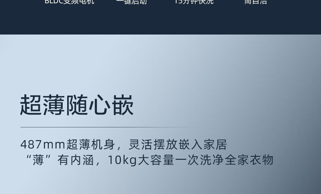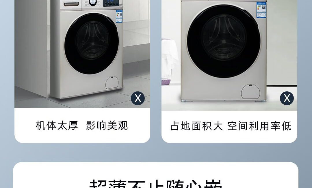 商品名称:J-美菱/MELNG 十分薄变频滚筒全自动洗衣机 10公斤大容量巴氏除菌除螨洗 超薄 两色可选 一级能效 送货上门 S1G100B极地白