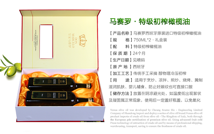 商品名称:马赛罗橄榄油精装礼盒(750ml*2)